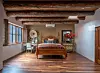The home also “showcases the craftsmanship Santa Fe is known for,” the says, with handcrafted vigas, smooth plastered walls, wood-beamed ceilings and custom cabinetry.