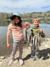 Ayden Baca, 7, caught four rainbow trout, and Ayla Baca, 3, caught three using Corn PowerBait while fishing with their dad at the kiddie ponds at Blue Hole Park Pond on March 28.