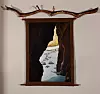 After carving and staining, Bowen adds a clay piece. She said the process always starts with finding an interesting wood shape, and the clay comes after. Her husband Leland works with Bowen to ensure the pieces hang properly. He crafts the implements the art hangs from.
