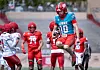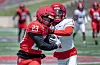 Running back Darrion Bowers is tackled in the end zone for the second safety of the quarter 鈥 Cherry 4, Silver 0